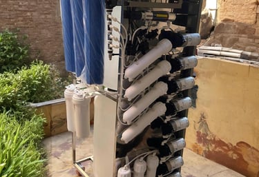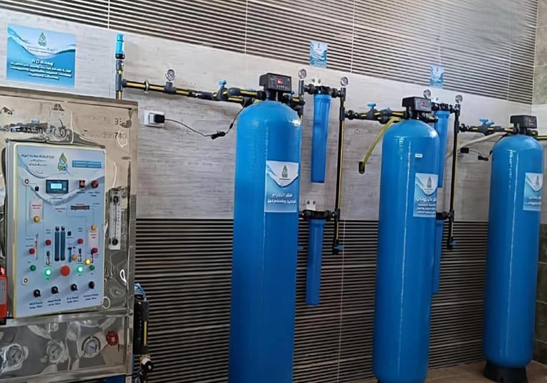 تقنية تنقية متقدمة: نعتمد على أنظمة التناضح العكسي (RO) مع مراحل متعددة لترشيح المياه تشمل إزالة الأملاح، المواد العضوية، والبكتيريا.