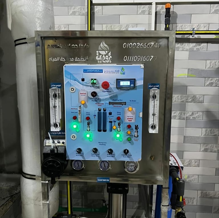 - فلترات متعددة المراحل (Sediment, Carbon, UF، إلخ). - أجهزة تحلية صغيرة للمنازل والمكاتب. - صناديق توزيع مياه ومقومات تركيب داخل المنشآت.